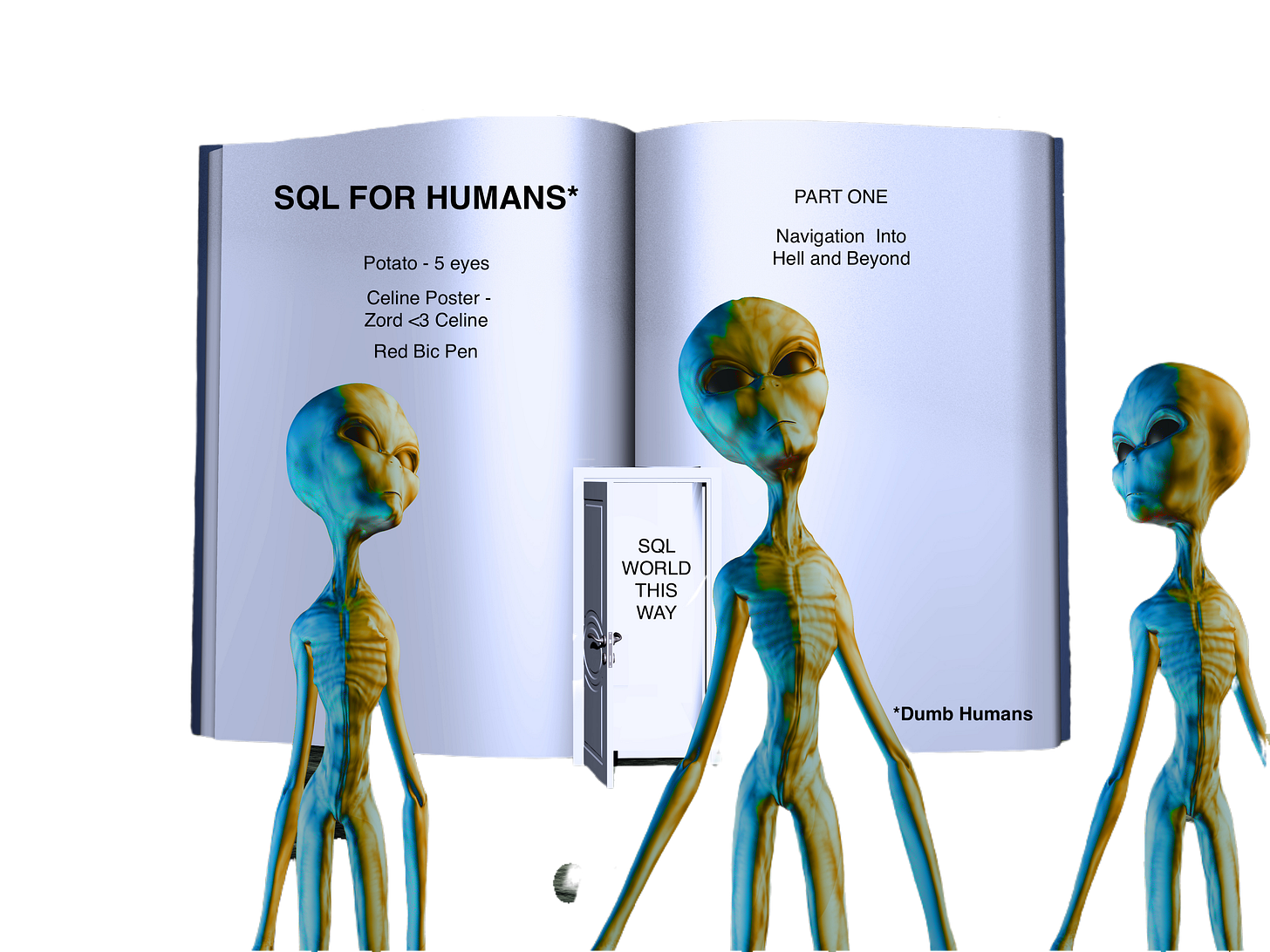 The best way to explain how to get around in SQL is to imagine that an alien abducts you and transports you to a neighborhood where you’ve never been at 3:00 AM and drops you off in the middle of the street. The power is out, and there’s barely enough moonlight to see the rooflines of the houses.